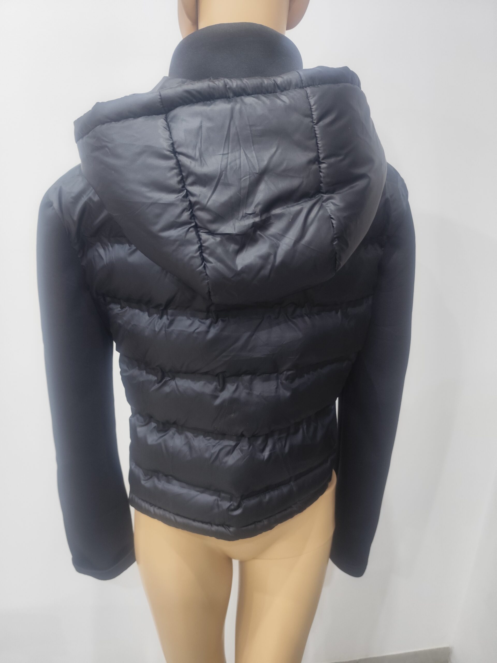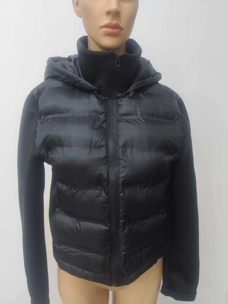Czarna kurtka dziecięca z kapturem w rozmiarze L. Lekka, pikowana kurtka idealna na wiosnę, jesień oraz chłodniejsze dni. Uniwersalny czarny kolor pasuje do wielu stylizacji dziecięcych.