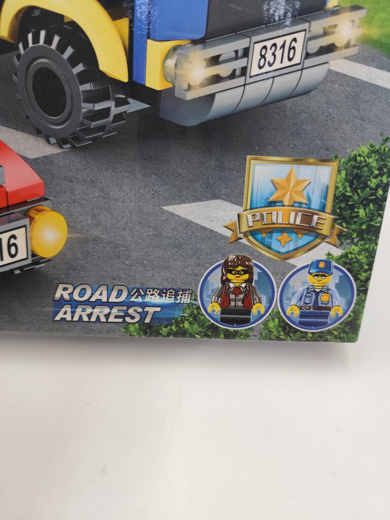 W zestawie znajduje się 456 elementów – pojazdy, figurki i części do zbudowania scenki „Road Arrest”.