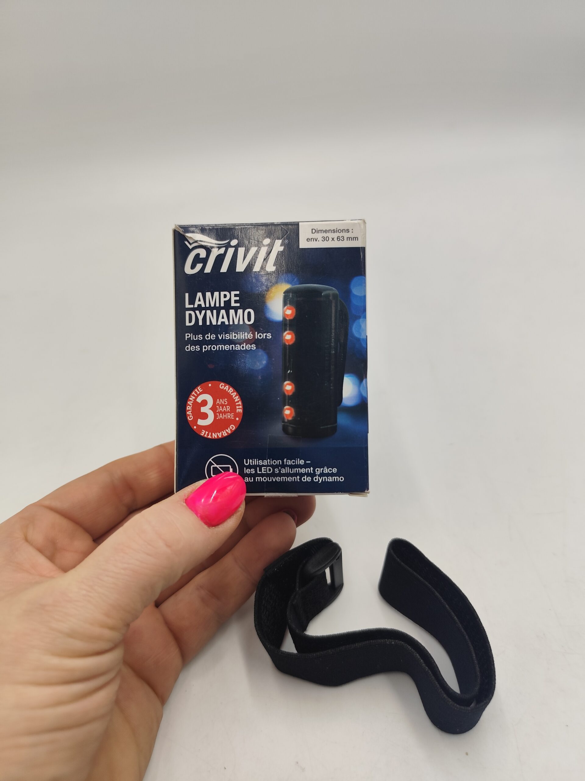 Lampka LED Crivit z dynamem – działa bez baterii, ładowana ruchem. Idealna do biegania, roweru i jako lampka awaryjna.