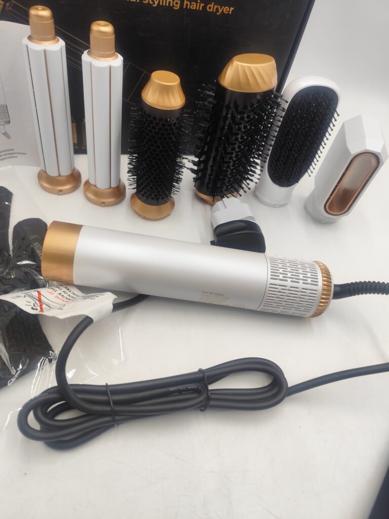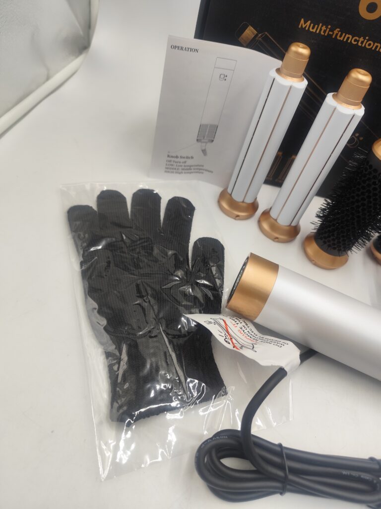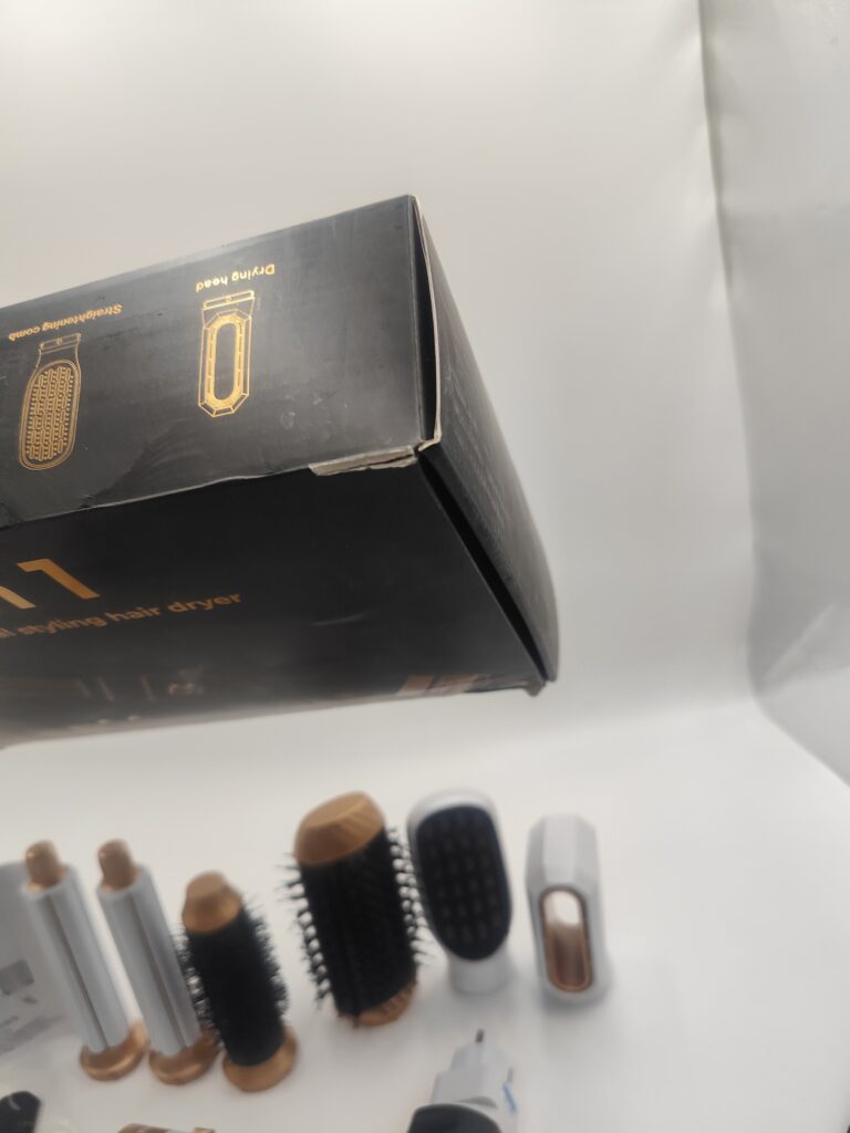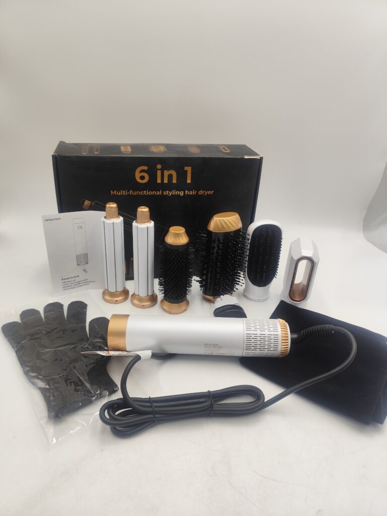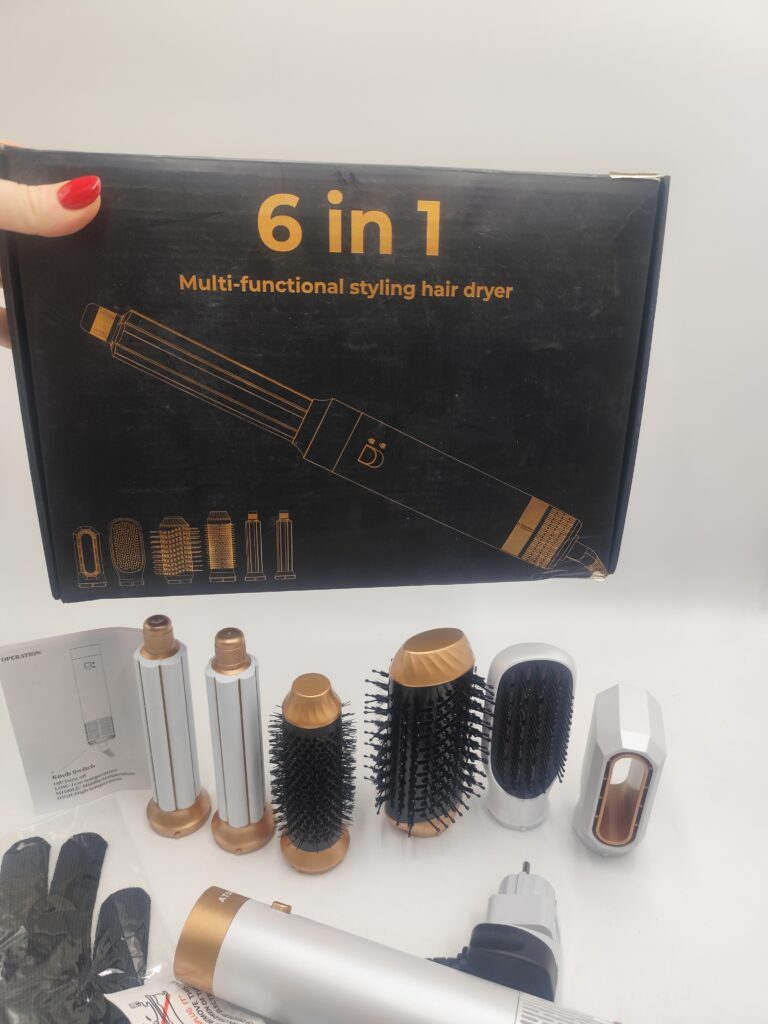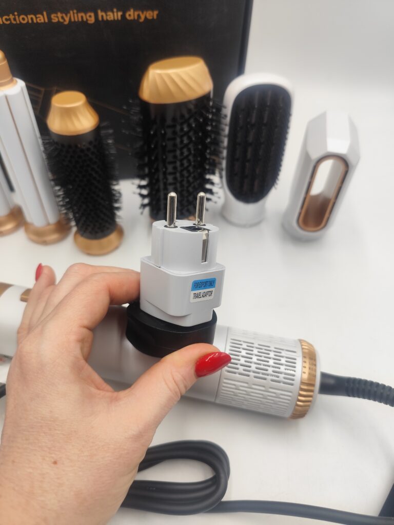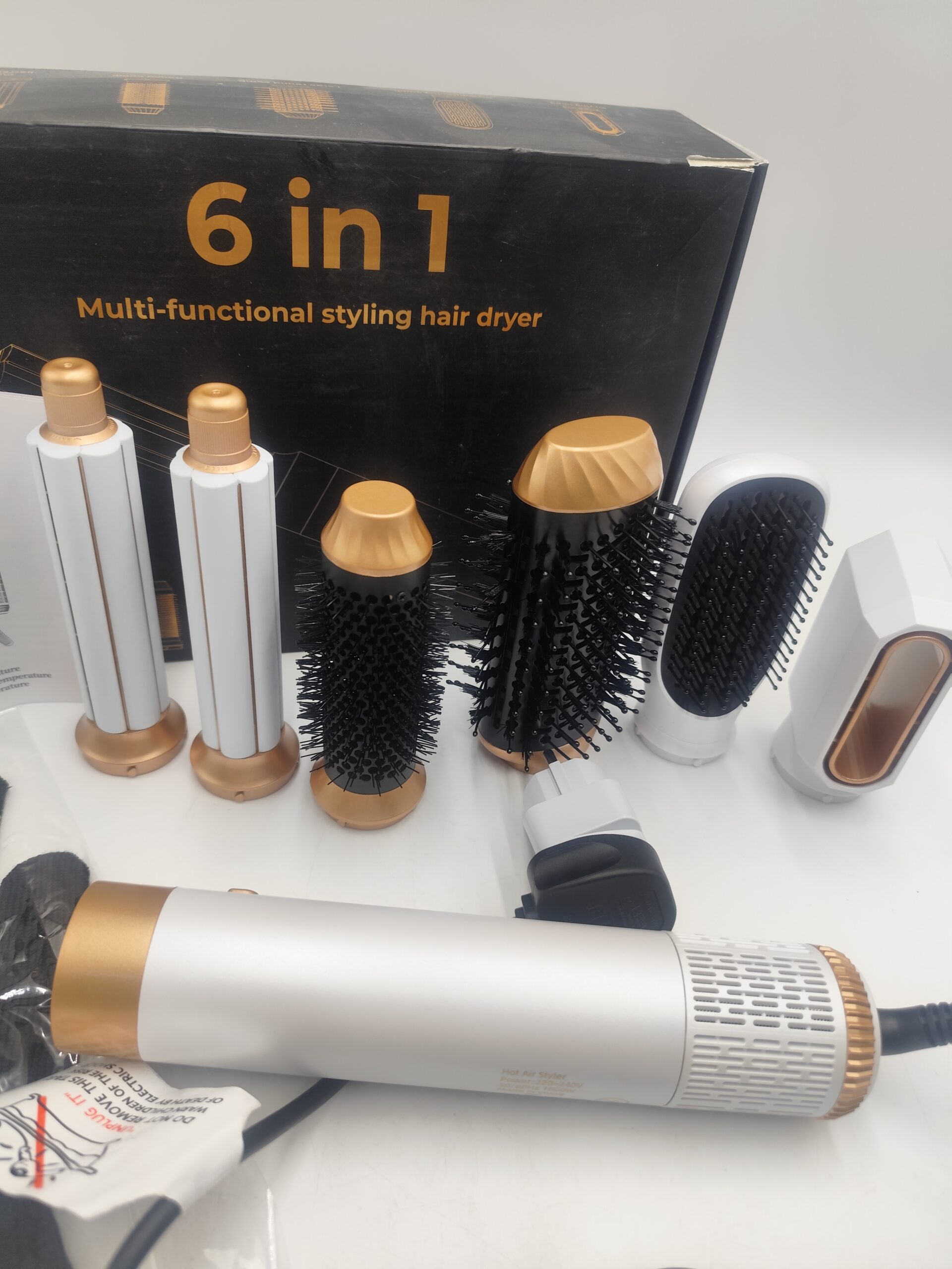 Lokówka 6w1 umożliwia suszenie, prostowanie, modelowanie i kręcenie włosów jednym urządzeniem. Zestaw zawiera różne końcówki do stylizacji, dzięki czemu dopasujesz efekt do długości i rodzaju włosów – od prostych pasm po miękkie fale i objętość u nasady.