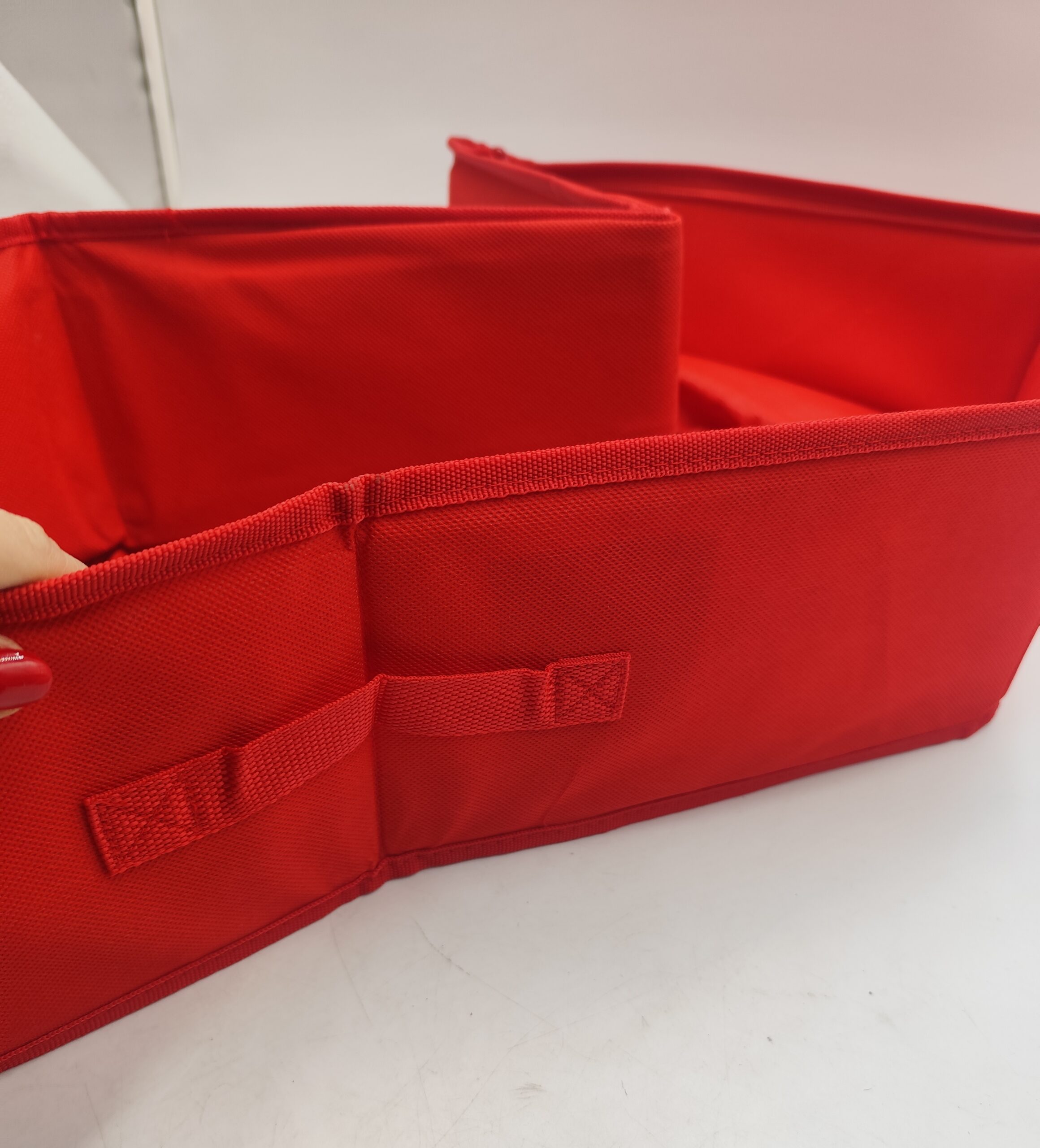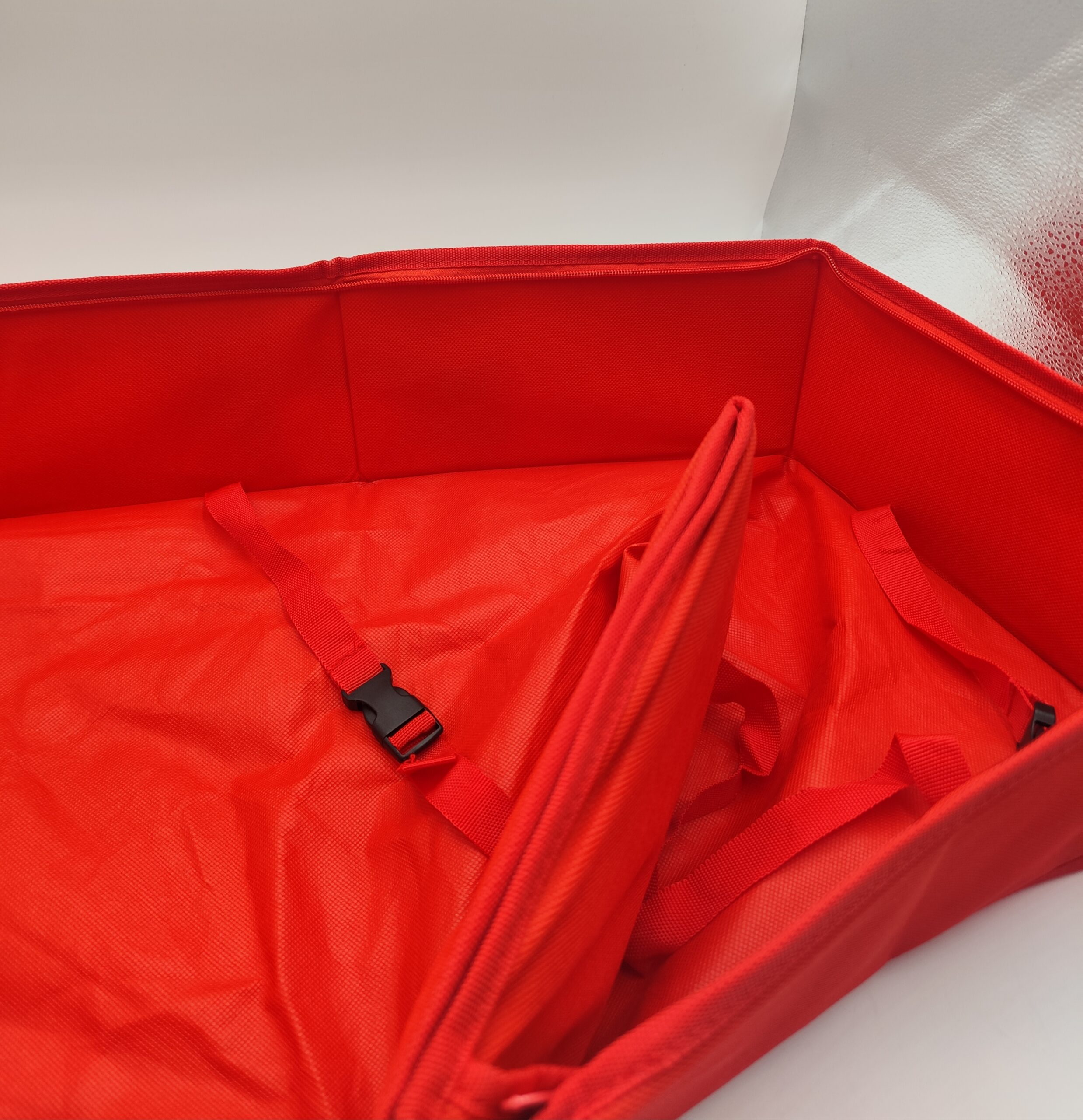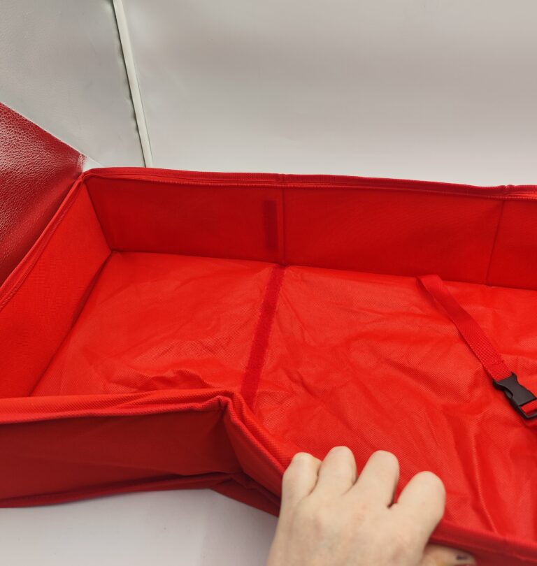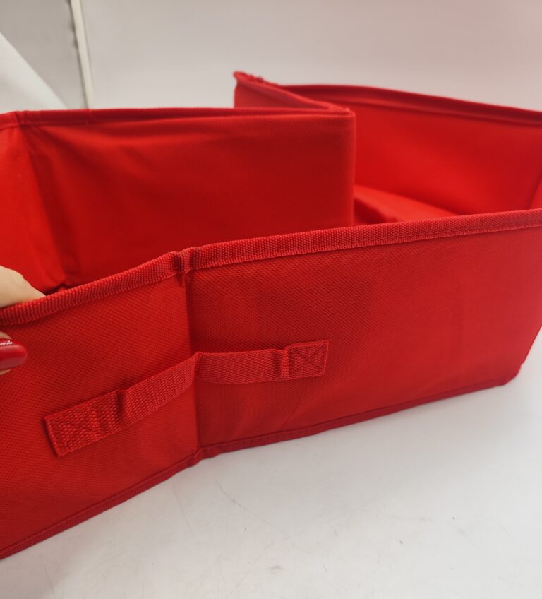 Składany i zamykany na zamek, posiada przegrody oraz paski stabilizujące zawartość, dzięki czemu wszystko w bagażniku jest na swoim miejscu.