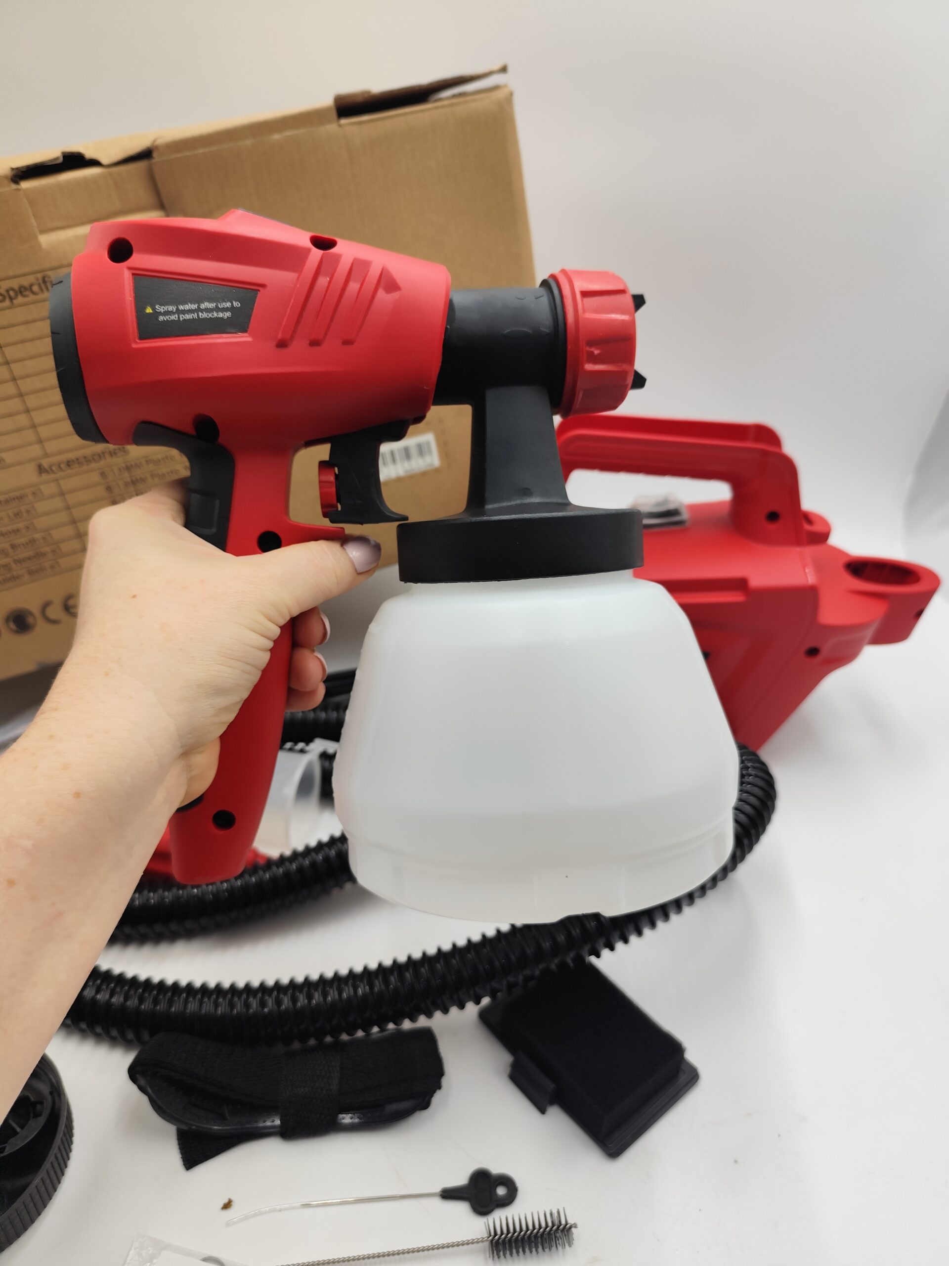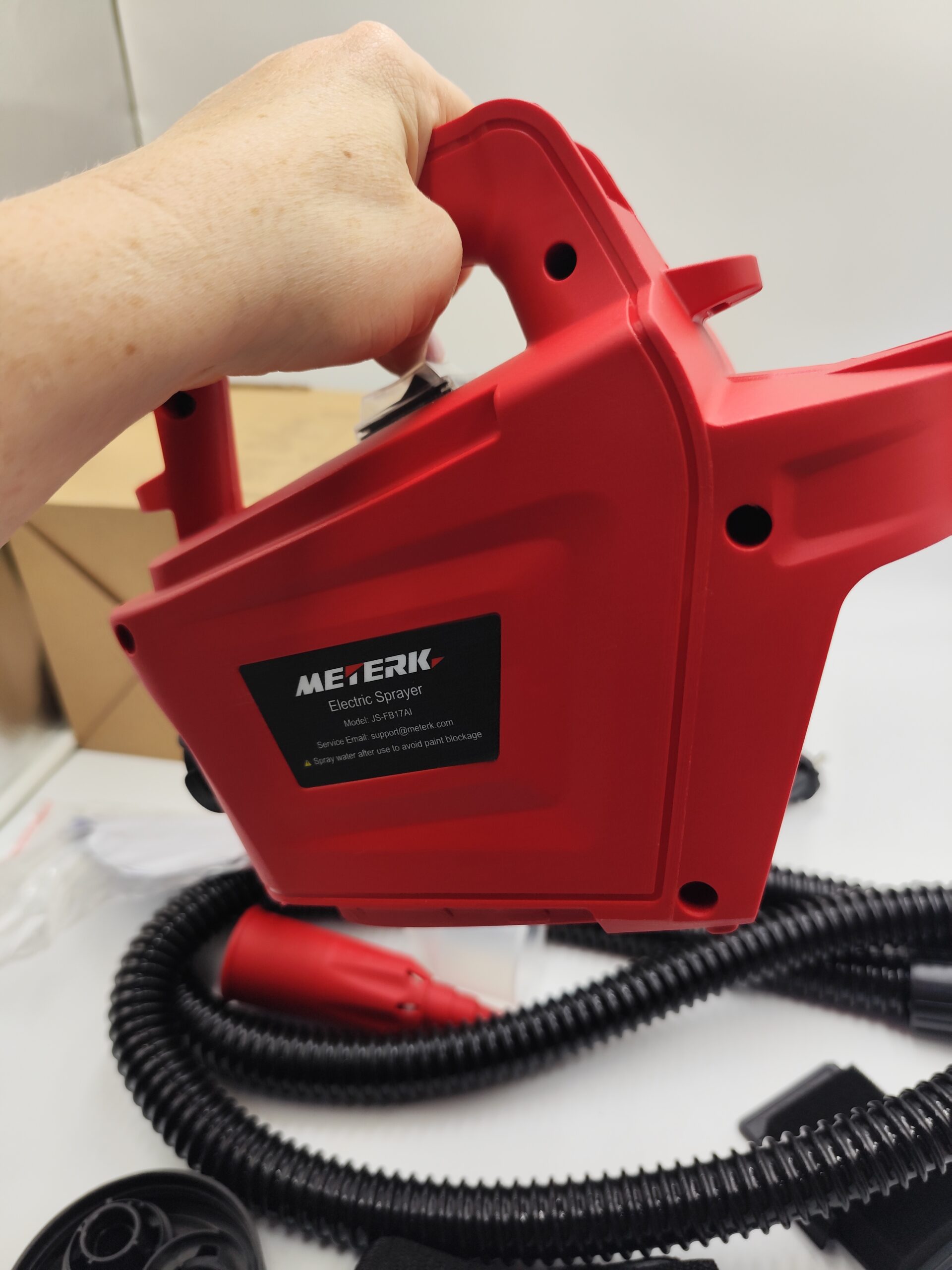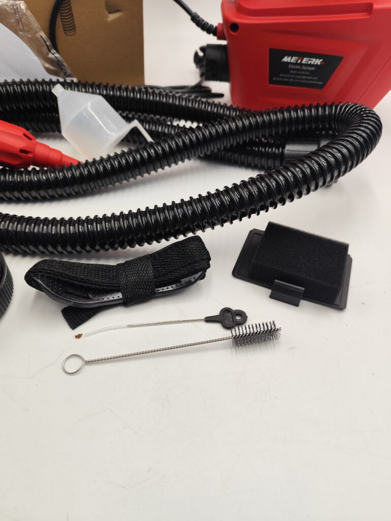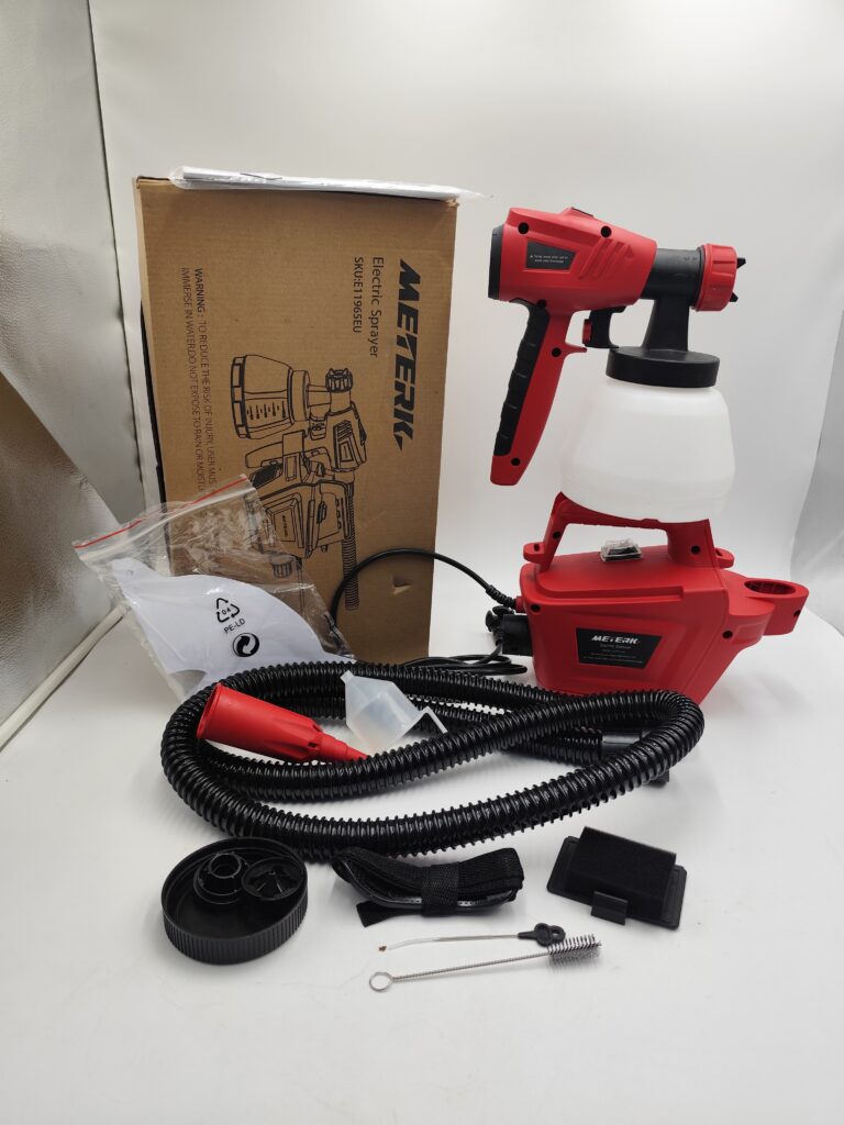 Pistolet do malowania Meterk 800W to praktyczne narzędzie do prac remontowych i wykończeniowych w domu oraz ogrodzie. Umożliwia szybkie i równomierne nakładanie farb, lakierów i bejc na różne powierzchnie.