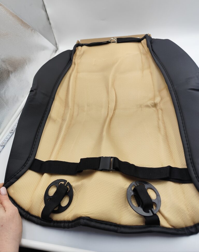 Pokrowiec wykonany jest z wytrzymałego i przewiewnego materiału, dzięki czemu zapewnia komfort podczas jazdy. Uniwersalny rozmiar sprawia, że pasuje do większości foteli samochodowych w autach osobowych, SUV oraz MPV.