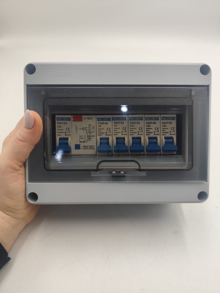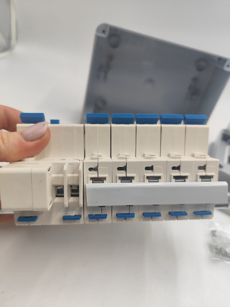 Rozdzielnica elektryczna z zabezpieczeniami – zwrot konsumencki, stan bardzo dobry.