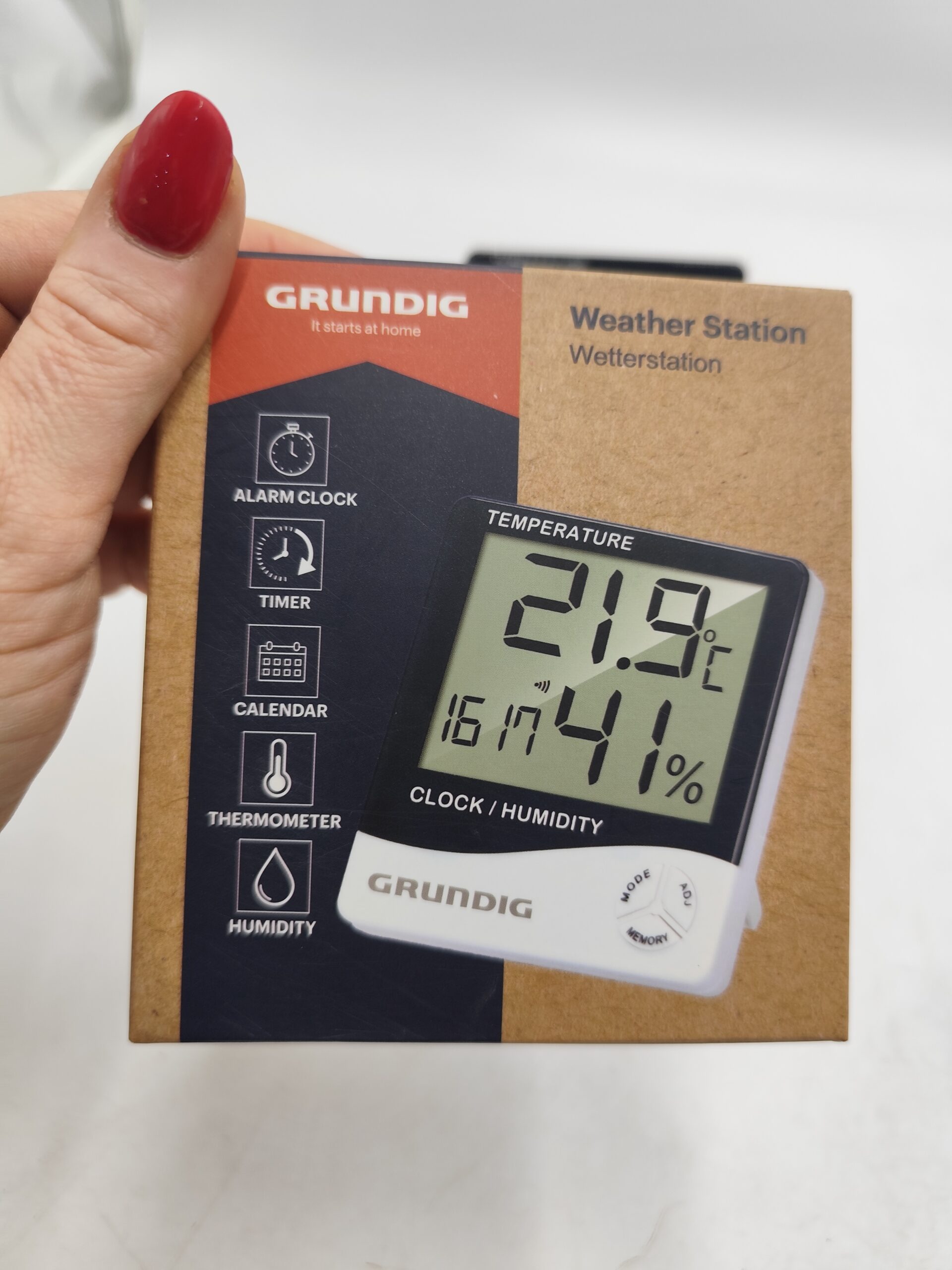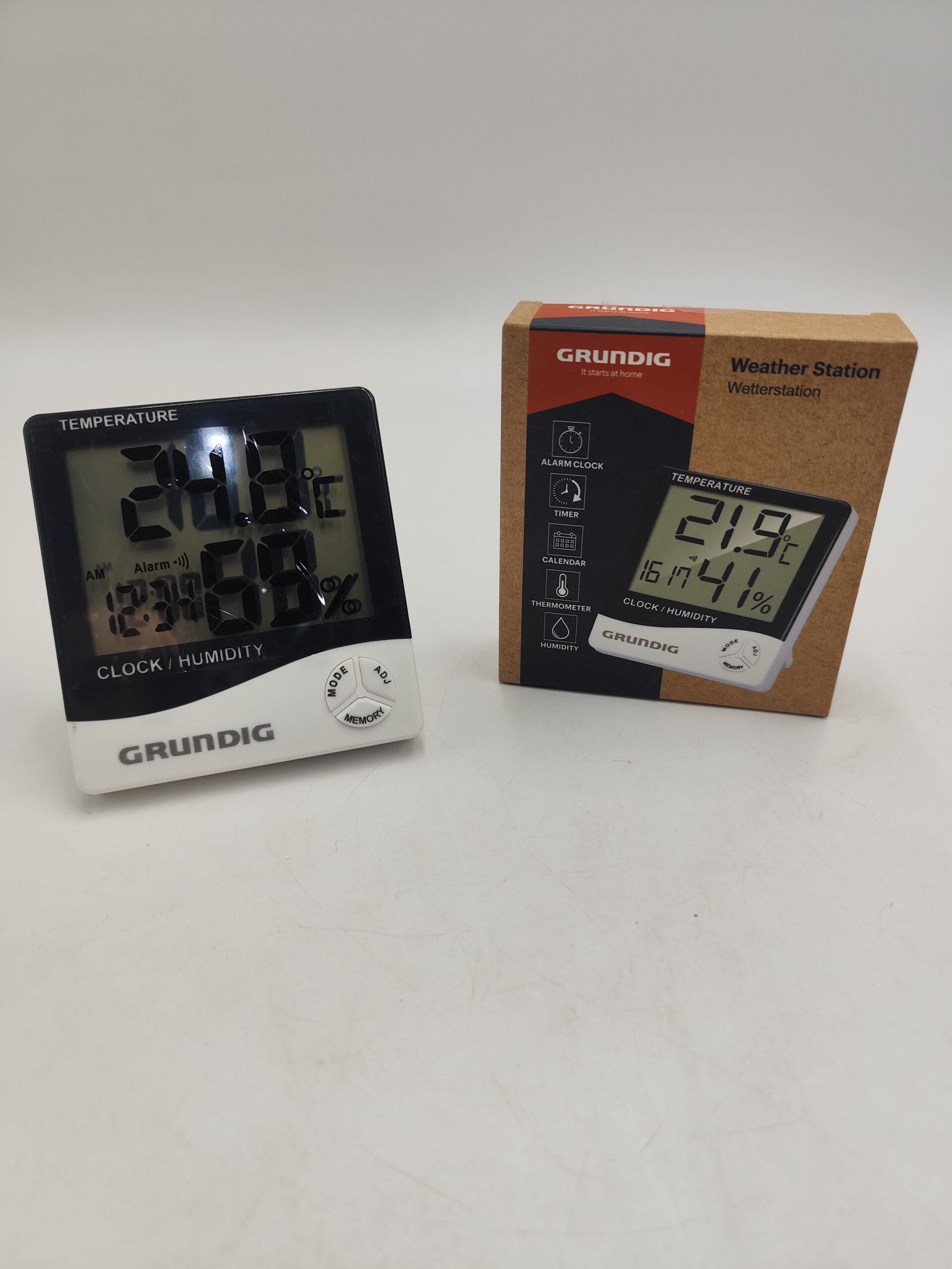 Stacja pogodowa Grundig do użytku domowego lub biurowego. Urządzenie mierzy temperaturę i wilgotność powietrza oraz wyświetla aktualną godzinę, datę i funkcję budzika. Czytelny, duży wyświetlacz LCD umożliwia szybkie odczytanie parametrów w pomieszczeniu.