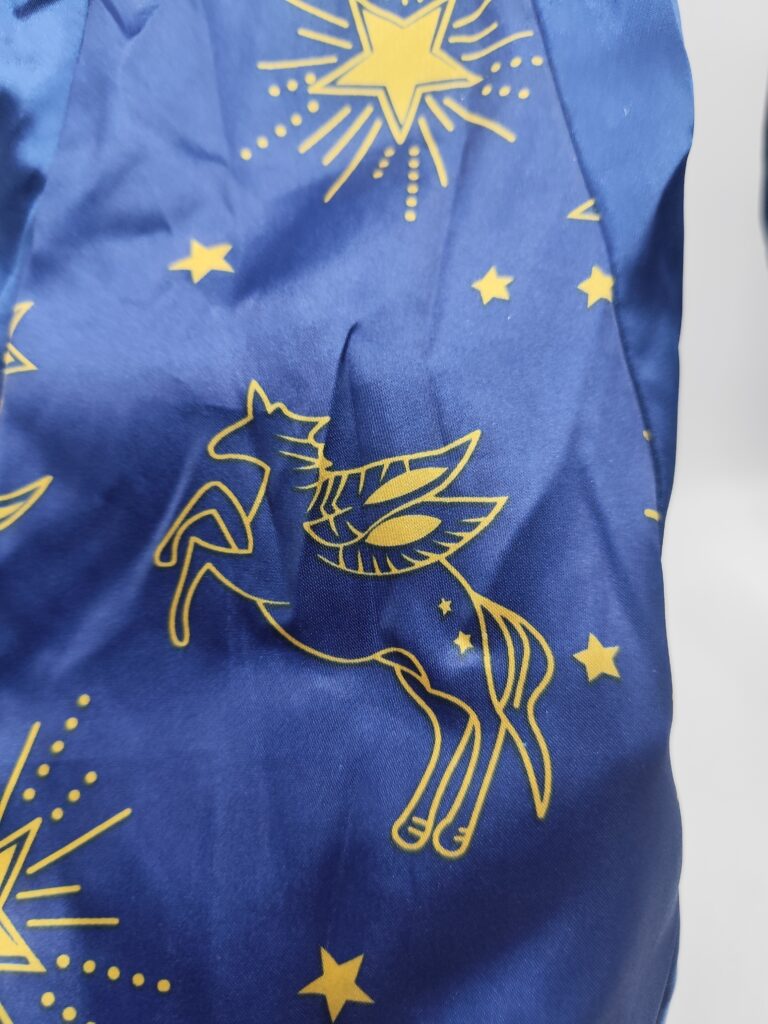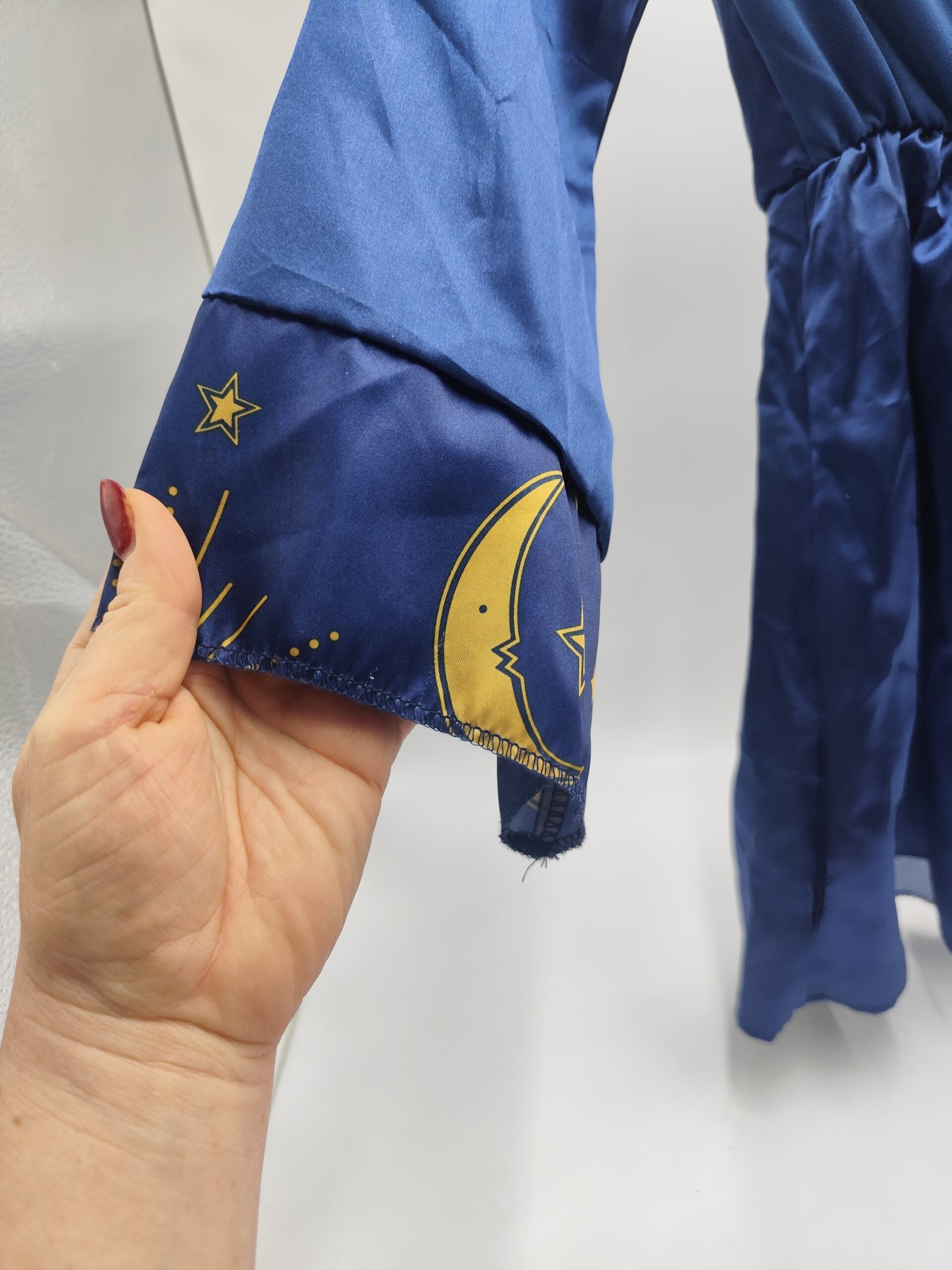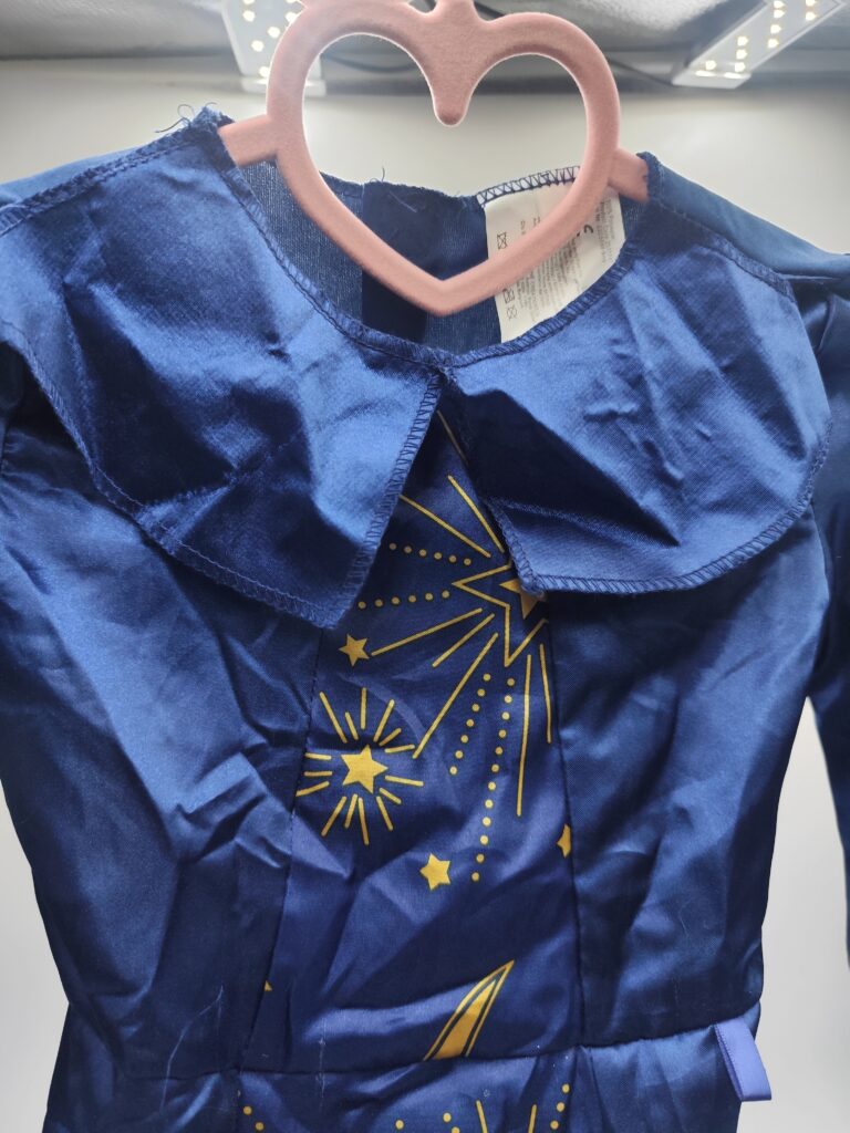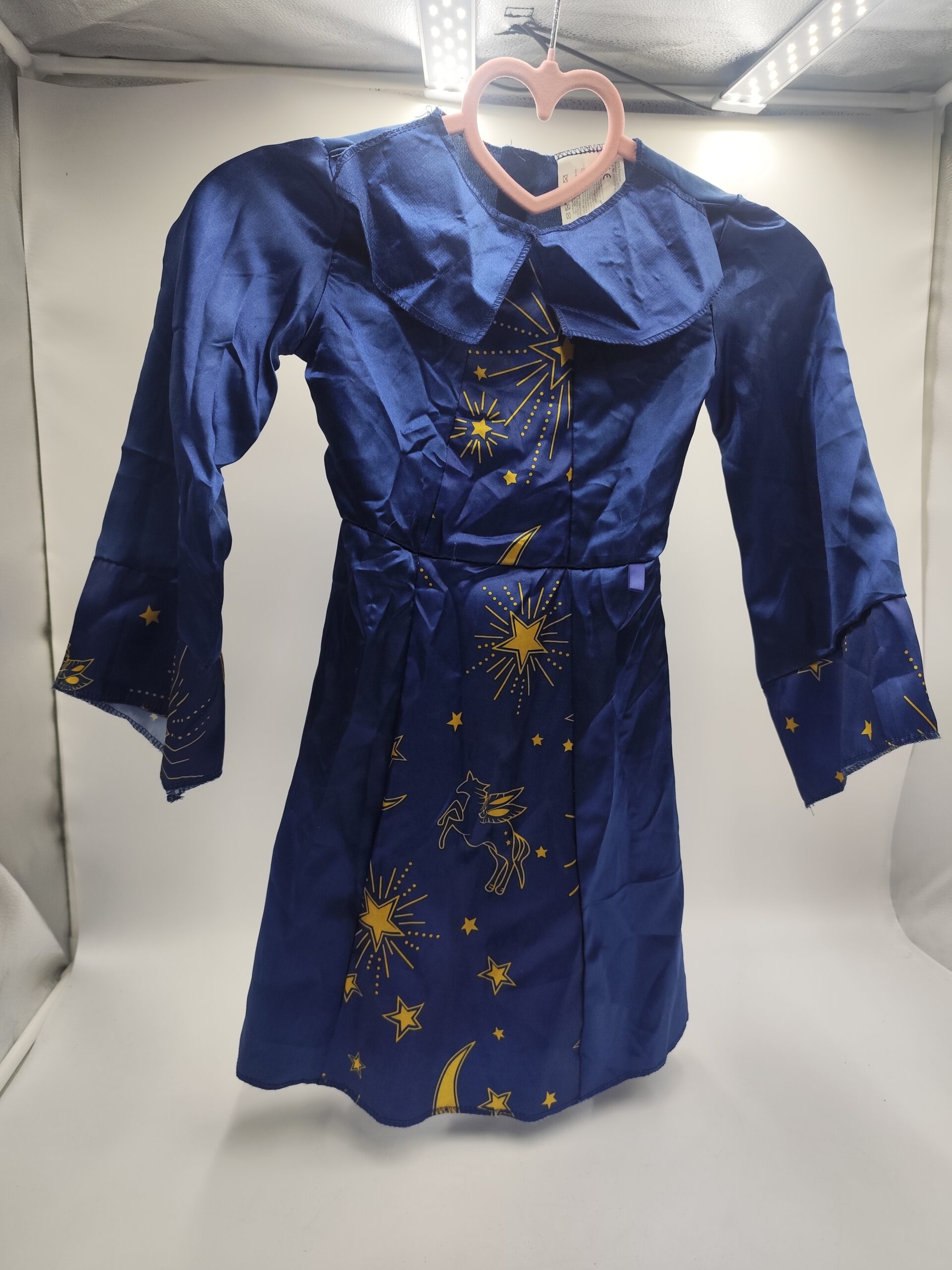 Piękny granatowy strój z nadrukiem gwiazd, księżyca i pegaza – idealny na bal przebierańców, szkolną imprezę lub Halloween.