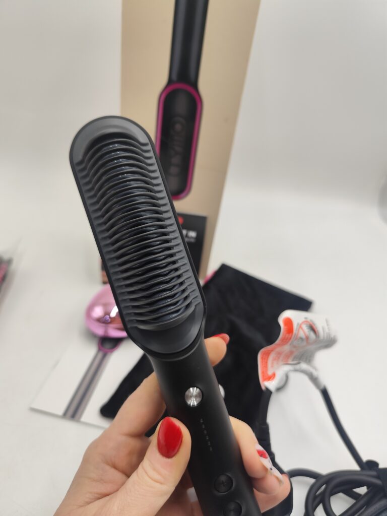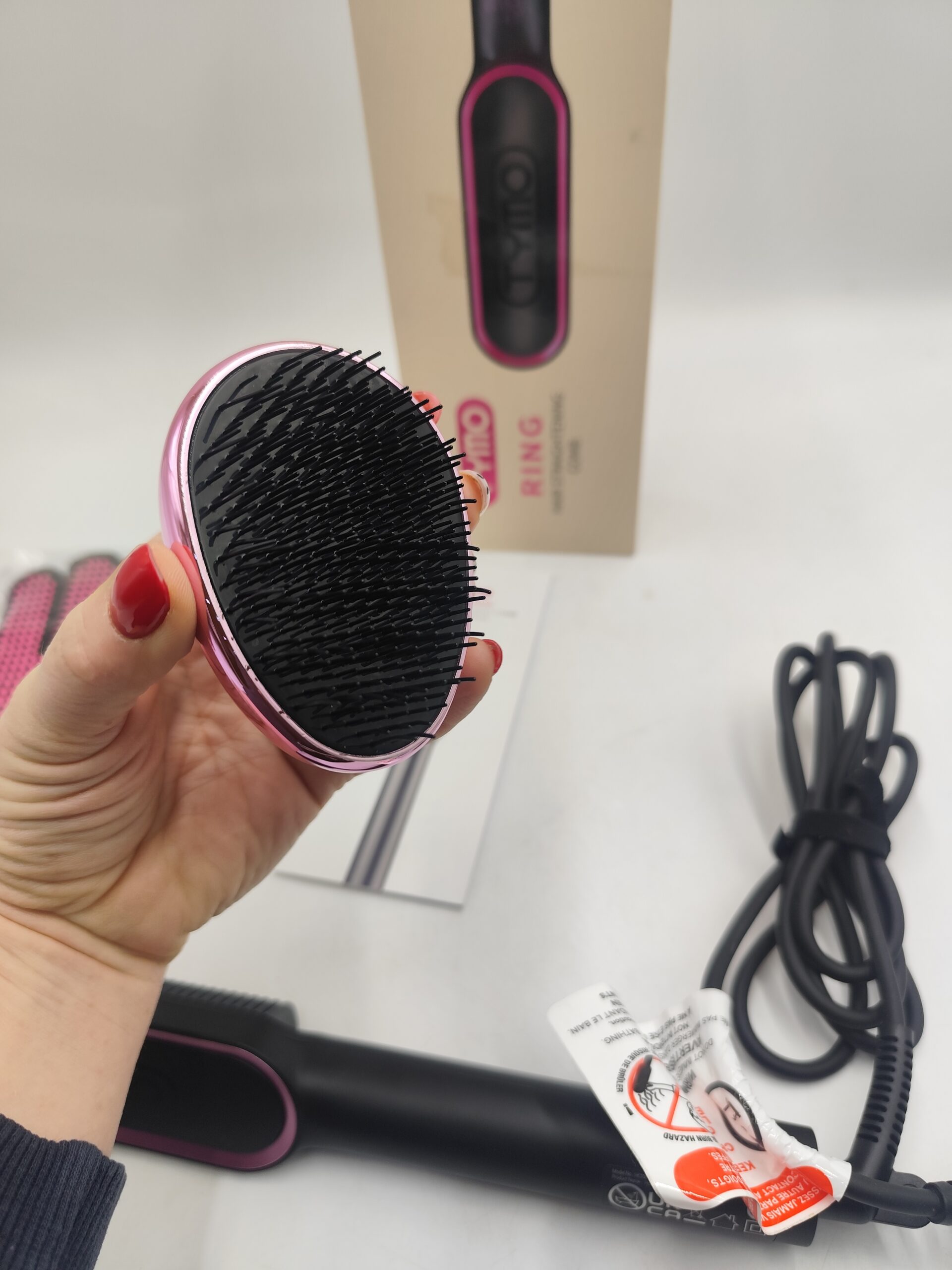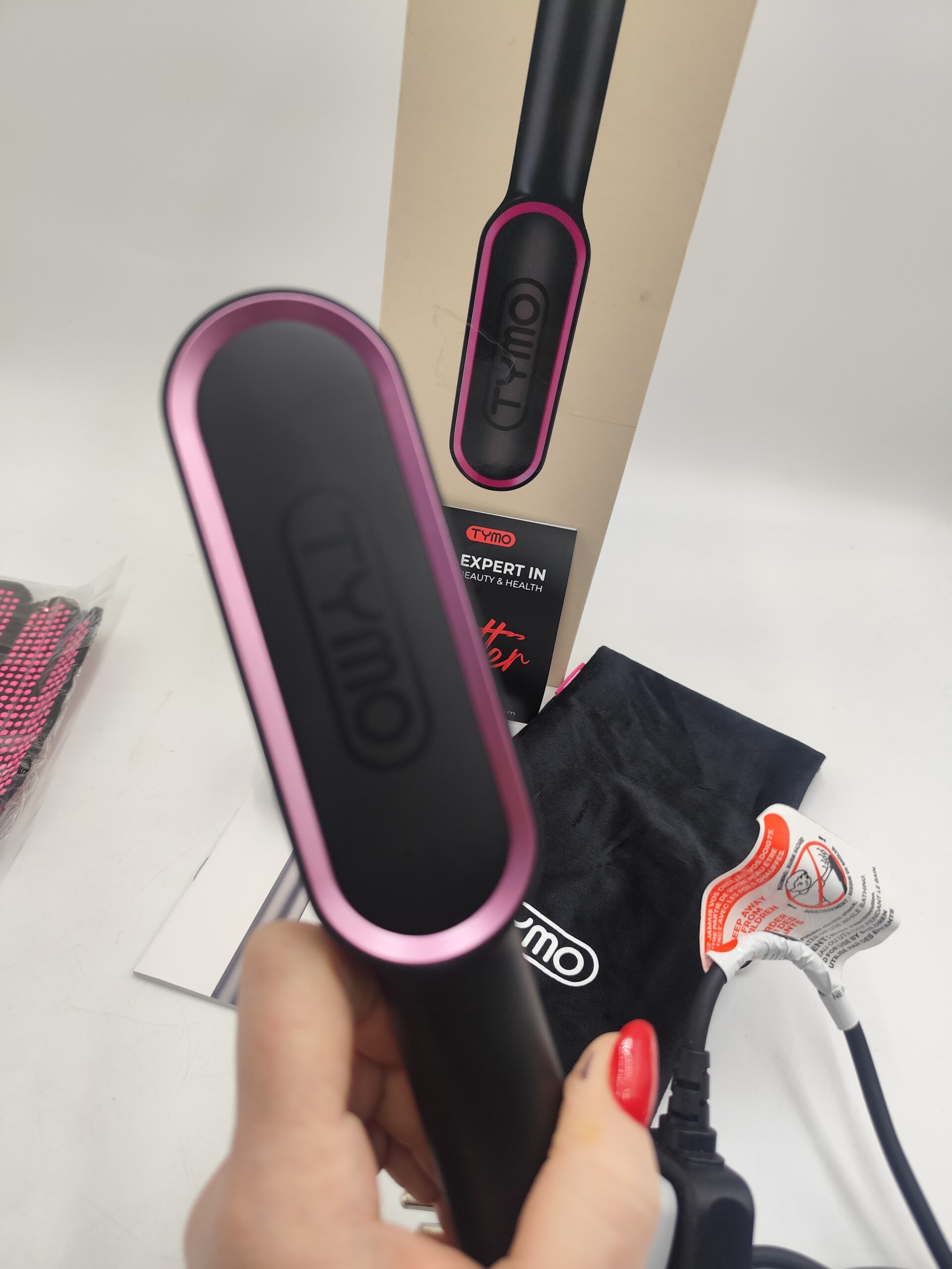 Szczotka prostująca TYMO Ring to praktyczne urządzenie do codziennej stylizacji włosów w domu. Pozwala szybko wygładzić i wyprostować włosy bez konieczności wizyty u fryzjera. Sprzęt jest nowy i w pełni sprawny, pudełko może nosić lekkie ślady magazynowania – bez wpływu na działanie.