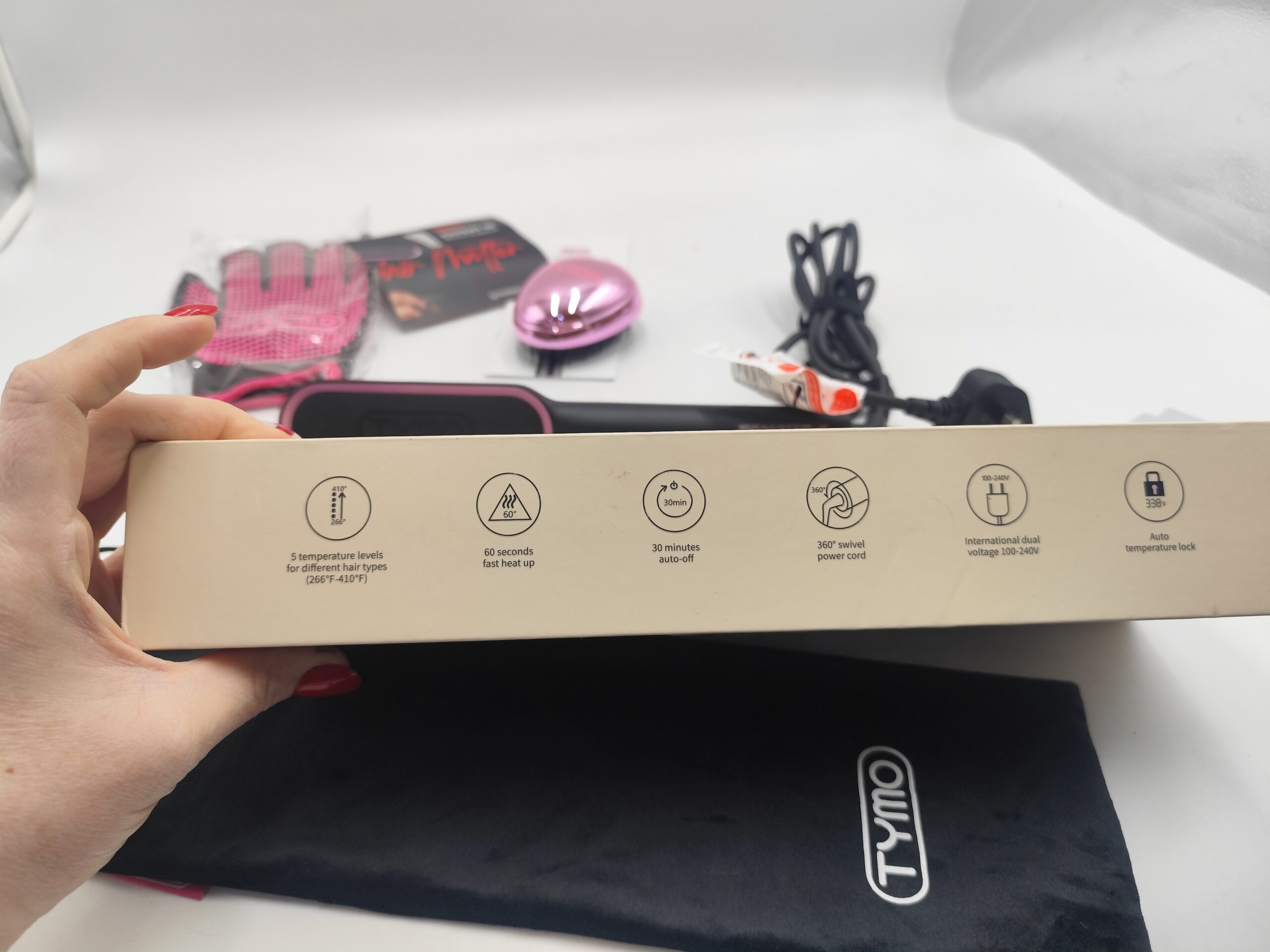 Urządzenie nagrzewa się w około 60 sekund i posiada 5 poziomów temperatury, dzięki czemu można dopasować ustawienia do rodzaju włosów. Obrotowy kabel 360° zwiększa komfort użytkowania, a funkcja automatycznego wyłączenia po 30 minutach podnosi bezpieczeństwo.