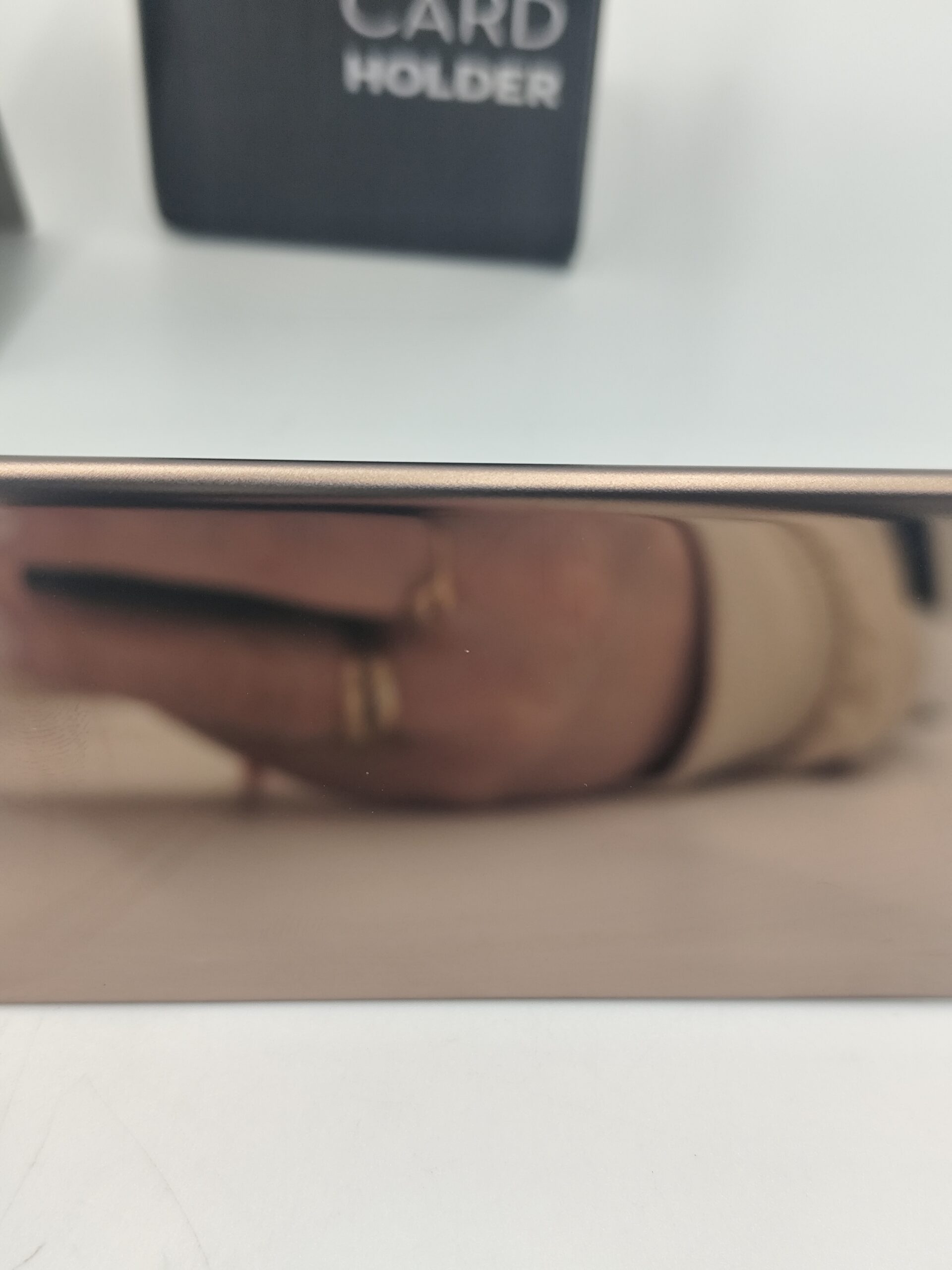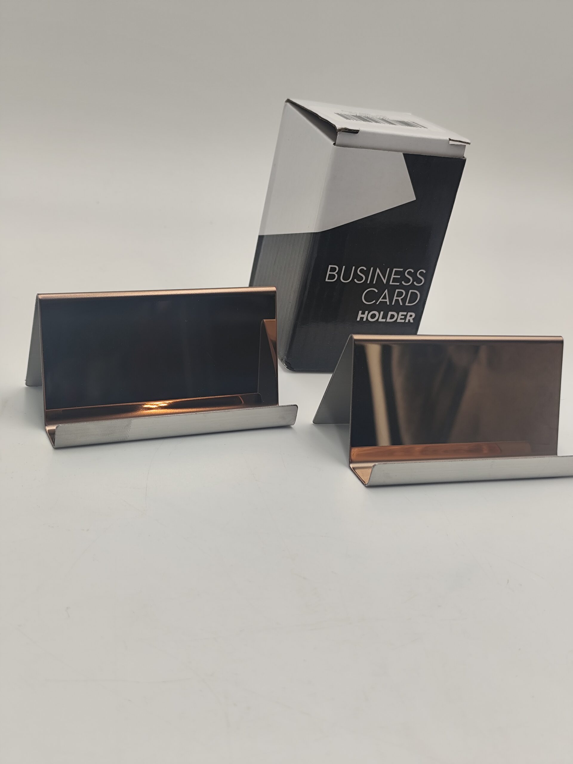 Wizytownik na biurko w kolorze rose gold.