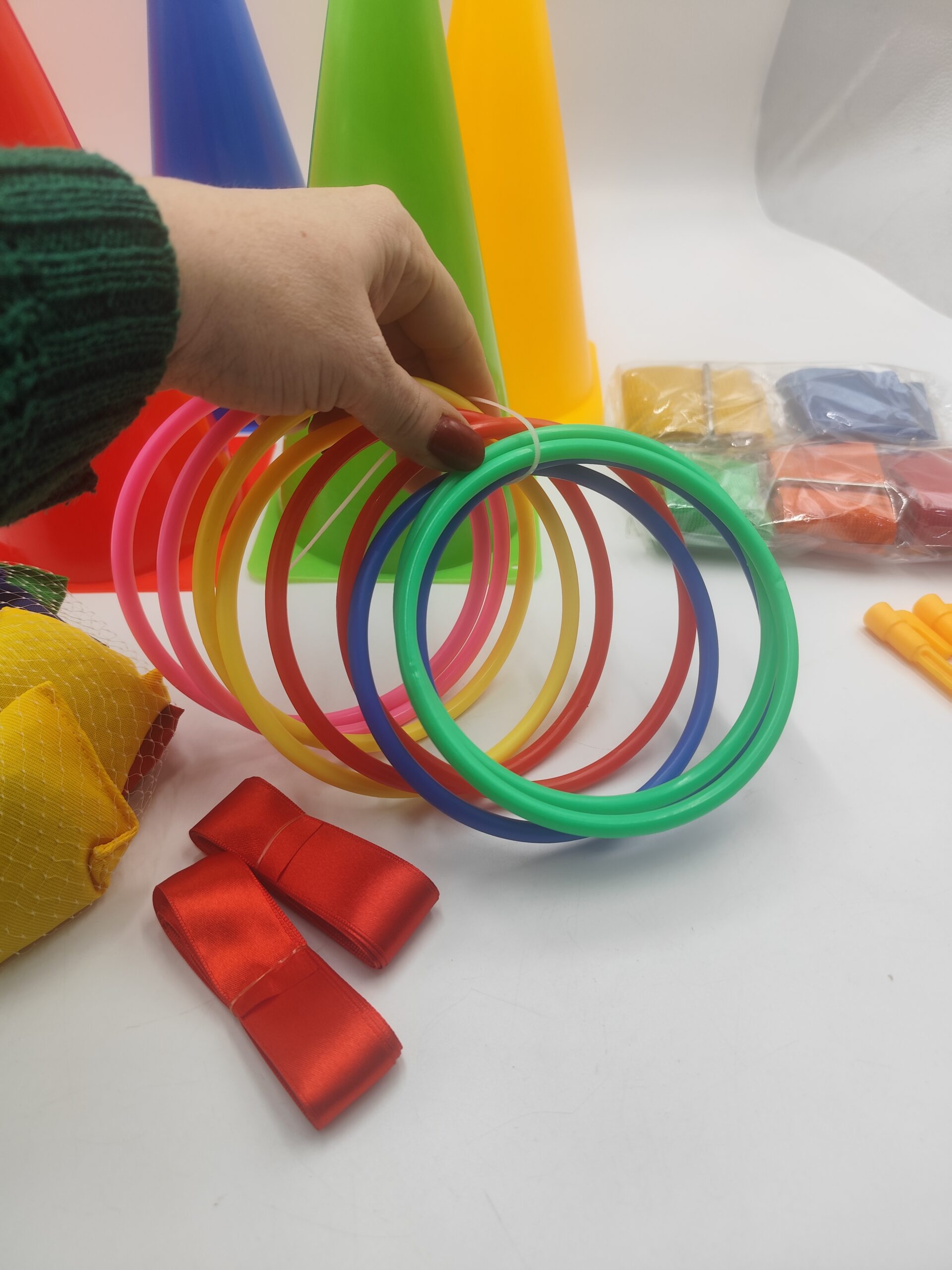 Kolorowy zestaw sportowy dla dzieci to idealna propozycja do aktywnej zabawy i prostych ćwiczeń ruchowych w domu, ogrodzie lub na sali gimnastycznej. Zestaw zachęca dzieci do ruchu, wspiera rozwój koordynacji i pozwala spędzać czas w zdrowy, radosny sposób.